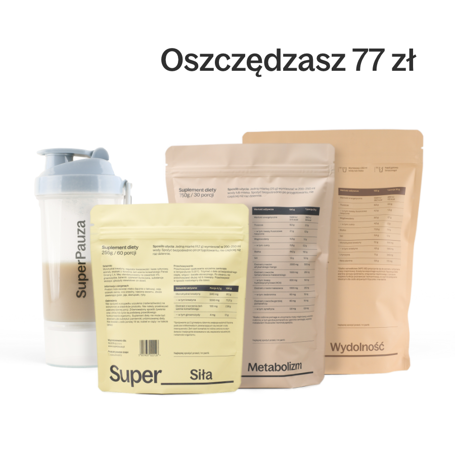 Zestaw Super Para Mięśnie jest dla tych, którzy chcą budować siłę, poprawiać wytrzymałość i szybciej się regenerować.